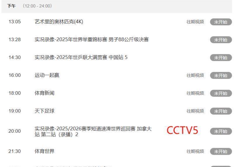 如果你错过了晚上的直播,或者想再次回味某些片段,频道也提供了丰富的点播内容。 在CCTV-5,晚上八点安排了《实况录像:2025/2026赛季短道速滑世界巡回赛 加拿大站》。 而对于冰上项目爱好者,这无疑是一道佳肴。