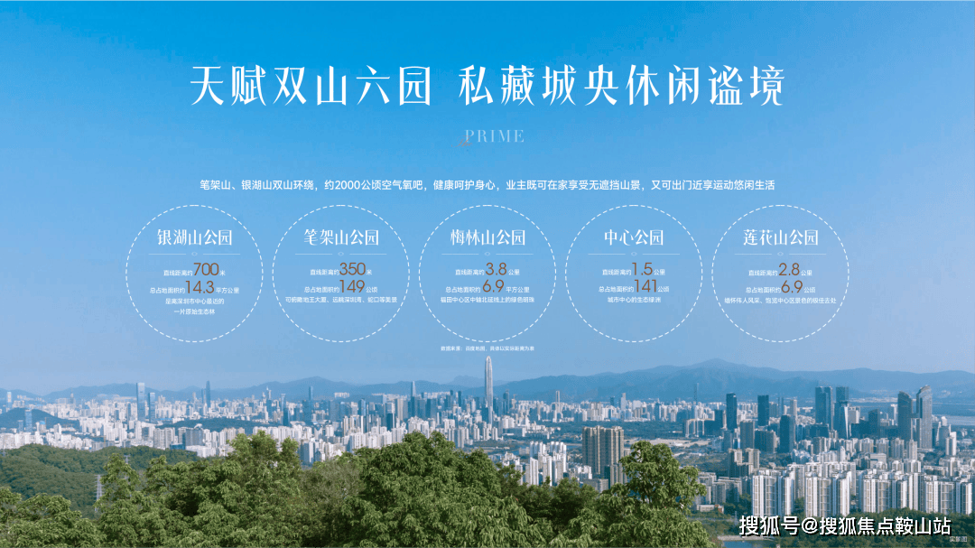 尽享自然景观与城市景观,北侧靠福田“大靠山”塘朗山山脉的银湖山,西侧靠近笔架山公园、深圳市体育中心以及南北贯穿福田的环中心公园,西南可以遥望繁华的福田中心区及平安大厦,东南遥望罗湖CBD。