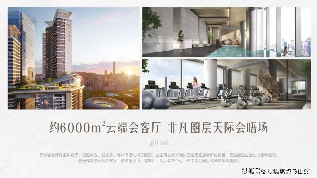 云端会客厅具备私宴厅、恒温泳池、健身房、等休闲运动娱乐配套,业主可在此享受如五星级酒店会所的配置,驭空圈层生活在此登峰造极。观光梯直通云端会客厅,俯瞰银湖山、笔架山、深圳体育中心、环中心公园以及城市璀璨美景。