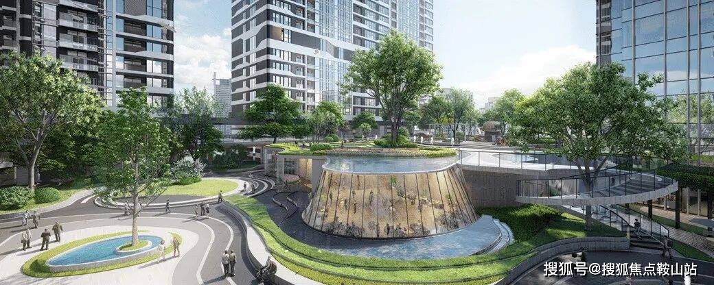 天工园林——约36000㎡五重立体园林设计,园林设计由全球最大的景观与规划设计公司AECOM设计,创新的引入了新加坡森林城市立体园林的概念,由下而上通过曲线的绿化、铺地、浅水等表达“山之叠嶂、绿之叠翠、水之叠灵、云之叠景”的意境。