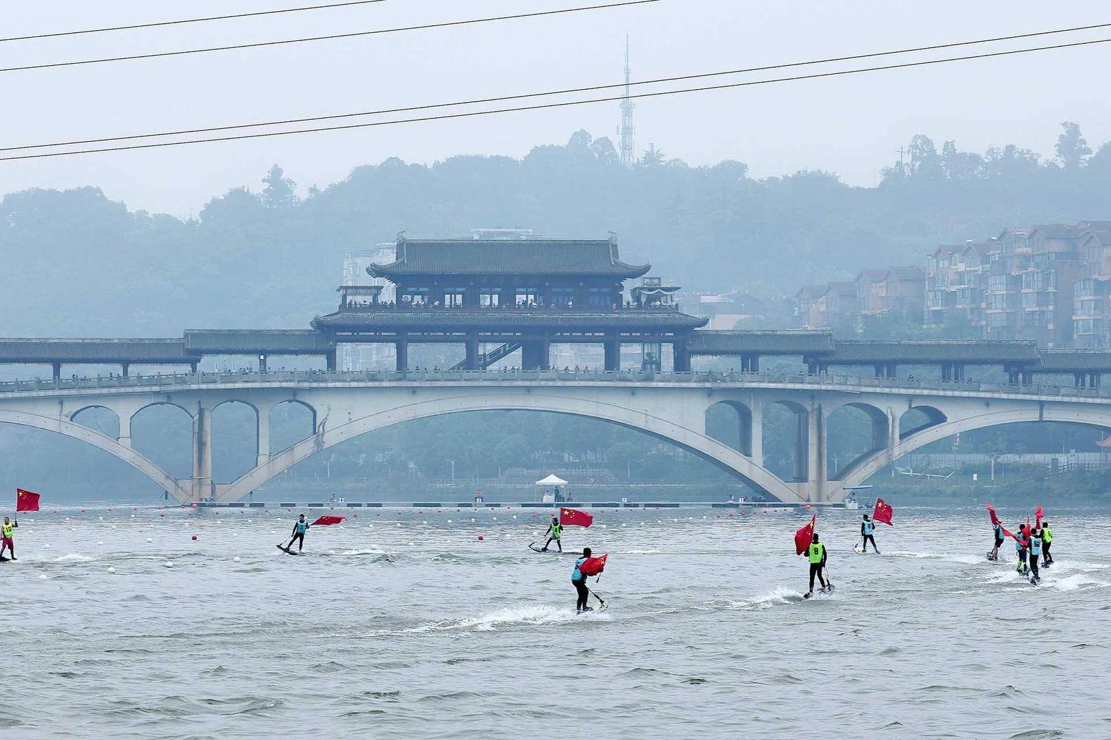 紧接着,数名运动员驾驶动力冲浪板如离弦之箭,在南河之上做出交叉、回旋、腾空等高难度动作,引来两岸观众阵阵惊叹,作为今年世运会刚刚新增的比赛项目,今天再次零距离呈现在观众面前。
